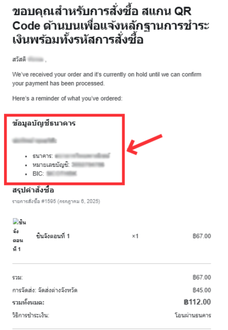 หลังจากชำระเงินเรียบร้อยแล้ว กรุณาส่งหลักฐานการโอนเงิน (เช่น สลิปโอน) พร้อมแจ้งเลขคำสั่งซื้อ