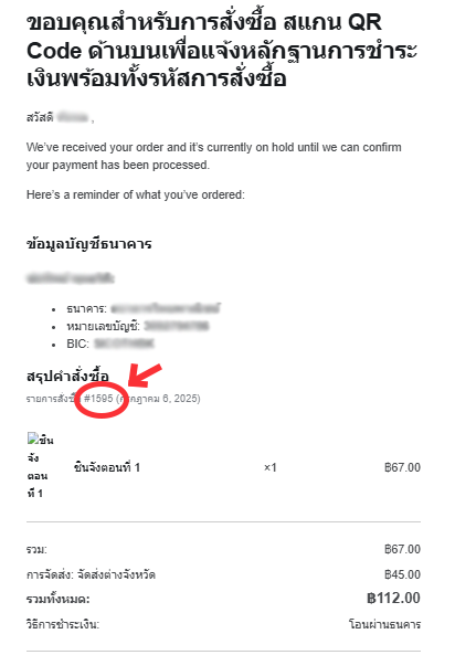 2. ตรวจสอบเลขคำสั่งซื้อใน Email ที่สั่งสินค้า